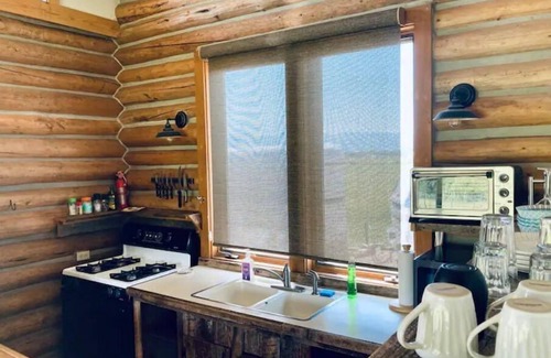 The cabin has an outdoor fire pit and an indoor wood stove to give you the authentic cabin in the mountains feel. There is also a large covered deck that is very private off the front with a propane bbq. Ask about boarding your horse in the attached private pasture.
