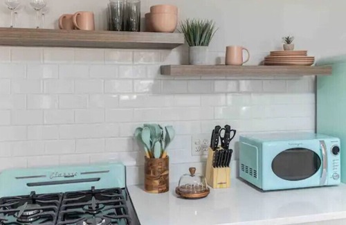 Our cottage is fully equipped to be your home away from home. The kitchen has all the charm of vintage style with brand new appliances in a fun teal colour. You’ll have everything you need for making coffee in the morning and preparing a delicious dinner at night. Pull up a stool at the eat-in bar or take your meal outside to the fire pit.