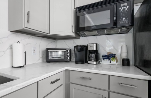 The open main floor living area is perfect for entertaining as it boasts an eat-in bar area with seating for 4 people. The porch on the first level opens to the street. A comfortable pull-out sofa is located in the living area along with stylish accent furniture and a large mirror. The home sleeps 6 comfortably in the 3 queen beds, however additional guests are welcome to sleep on the pull-out sofa allowing us to accommodate up to 8 guests.