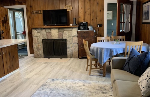 Just 1 block from the Lake with a nice view, our Cottage is next door to our "Post Office Cottage". It is divided by a large Breezeway. Each half has 1 queen bedroom, 1 twin bunk room & a living room with a TV. The excellent Wifi (Roku) & separate spaces are great for work/study & privacy. Extra clean & charming with decks out front & in the fenced in backyard. Charcoal grill, picnic table, 2 Kayaks w/cart & fire pit with lots of chairs. Pets must be pre approved with $30 pet fee. Just across the street from the convenient party store. Located in Sam-O-Set area, with it's own small public beach/playground and neighborhood boat launch.