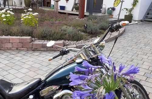 Our lovingly furnished tiny house and the friendly guest rooms offer you the comfort you need. The cozy common room and the garden invite you to linger – ideal for small groups or family gatherings. Motorcyclists and short-term guests are warmly welcome!