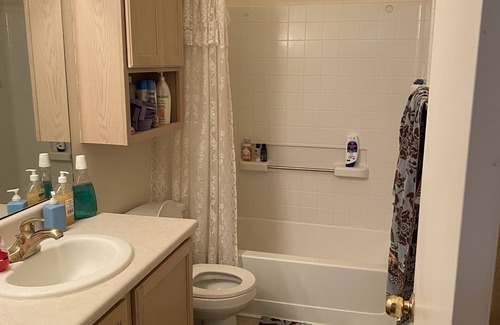 This is a LIVED in home. This is not your typical VRBO, as I live in the home and am only renting out the additional room. Very quiet neighborhood. You have all the amenities of a home, including fully stocked kitchen (including spices and staples), full-size washer and dryer, private bathroom, hot tub, and more. There are two dogs that live here, they are VERY friendly, so please be aware before booking.