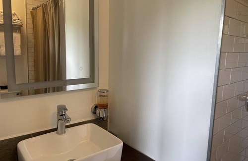 Chimney Top Rock is newly renovated and the property is under new management. The sleeping arrangements are 1 queen bed. Coming soon bunk beds for the kids. There is wi-fi with a smart television. A workspace for eating or working is available along with a mini fridge and microwave. This room is on the ground floor and faces the back of the property.