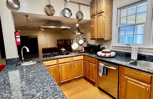 Step into a world of elegance and comfort with #C, which boasts 2 bedrooms and 1 bathroom. The kitchen and kitchenette are equipped with a toaster oven, full-size refrigerator, microwave, dishwasher, and much more. The first bedroom offers a luxurious king-size bed, accommodating up to 2 guests, while the second bedroom features two cozy queen beds, perfect for a party of 4. For those seeking even more room, consider booking both #C and #D together to create an expansive living space.