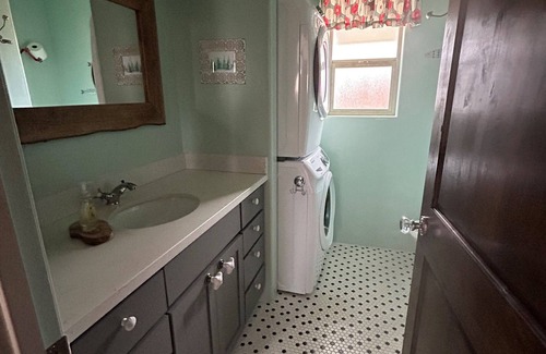 The Rose Canyon Lake Cabin in Summerhaven on Mt Lemmon has been decorated with a mountain lake theme décor. The views from the deck have you overlooking all of Summerhaven, Arizona. Bedroom 1 has a king bed with California closet system and bedroom two has a bunkbed with a queen bed on the bottom and twin bed on top. There is a second TV is the bunkbed room with access for electronic games. This is a YEAR round cabin on asphalt county maintained road. We provide shovels and salt in the event you get some fluffy white stuff in the winter. This is the perfect cabin for those of you looking for privacy. This cabin is pet friendly for responsible pet owners and the large deck is completely enclosed. There is a full kitchen for cooking with a table to eat outside and watch the sunset over Summerhaven.