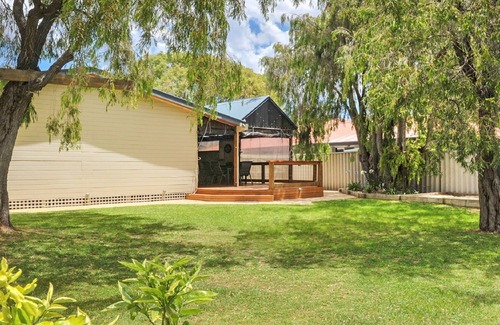 The backyard is grassed, shady and fully enclosed so the kids & dog can happily & safely play. STRICTLY outside pets only please.