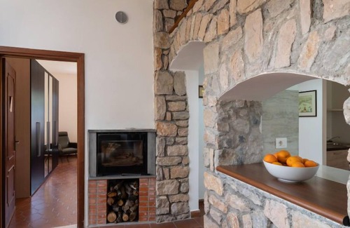 "Rosmarino", 3-room house 80 m2. Renovated in 2015, practical and rustic furnishings: living/dining room with open-hearth fireplace, Scandinavian wood stove, dining table, satellite TV, electric heating and air conditioning. 2 rooms, each room with 1 bed (80 cm), 1 double bed (180 cm), electric heating and air conditioning. Kitchen (dishwasher, 4 gas rings, toaster, microwave, freezer, electric coffee machine). Shower/bidet/WC. Terrace roofed, patio. Terrace furniture, barbecue, deck chairs (2), covered balcony. Facilities: washing machine, children's high chair, baby cot. Internet (WiFi, free). Maximum 2 pets/ dogs allowed. CITRA: 009025-LT-0009