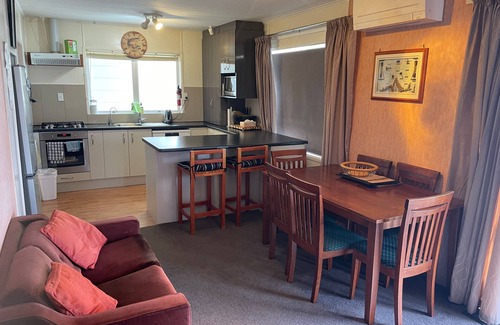 Modern kitchen/lounge/dining, auto washer/dryer, dishwasher, gas hob, oven, large frypan, microwave, gas hot water and heating, New Air Conditioning Main lounge, covered area with BBQ.