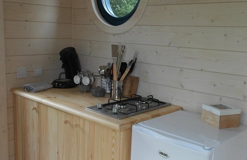 Each trailer is designed for 2 to 4 people, they are equipped with solar panels, dry toilets, a kitchenette, a garden furniture, a barbecue (charcoal provided) and a beautiful terrace in wood.