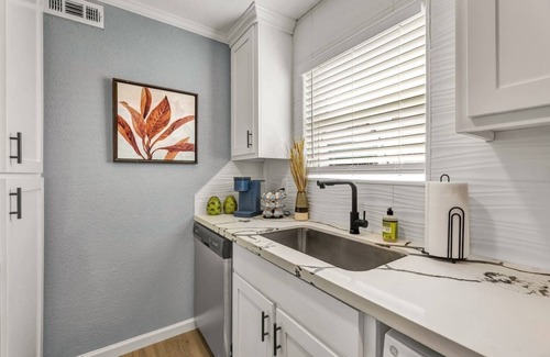Your group will enjoy this comfortable and stylish place just blocks from the Texas A&M Campus and even closer to the shopping and nightlife at Northgate. Because the unit is on the north side of campus, it is central to all things Bryan and College Station. Both bedrooms boast the most comfortable king size beds and the kitchen is well supplied with all the basics for cooking. The big screen Smart TV with streaming access where you can log into any of your streaming services.