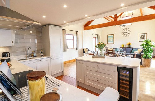 Amenities: Gas underfloor heating. Electric oven and hob, microwave, fridge/freezer, wine cooler, washing machine, dishwasher. TV, WiFi, and a selection of books. Fuel and power inc. in rent (except for car charging). Bed linen and towels inc. in rent. Travel cot and highchair available on request, please bring own cot bedding. Off-road parking for 2 vehicles, there is one EV charging bay on site, available for an additional cost. Bicycle storage available. Private garden with lawn, patio and furniture. Sorry, no pets and no smoking. Shop 1.2 miles, pub 0.3 miles. Note: There are 5 outside steps from carpark to property. Note: A further single, suitable for a child, can be added to one of the ground floor bedrooms. Note: The property is surrounded by working farmland. Note: The property can only accommodate 8 adults and 1 child aged 12 yrs and under
