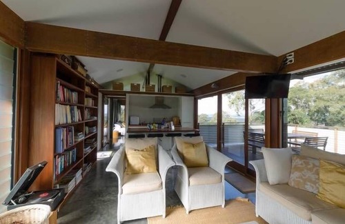 Rudders River Cottage, a self contained studio offers a modern, stylish, warm and comfortable private space for couples, travelling professionals and small families. It has been architecturally designed and features beautifully crafted red ironbark and floor to ceiling windows which capture glorious views of the Wang Wauk, Coloongalook river junctions. The queen bedroom has a private terrace and ensuite bathroom. Extra guests can be accommodated on a comfortable pull out sofa bed in the living area.