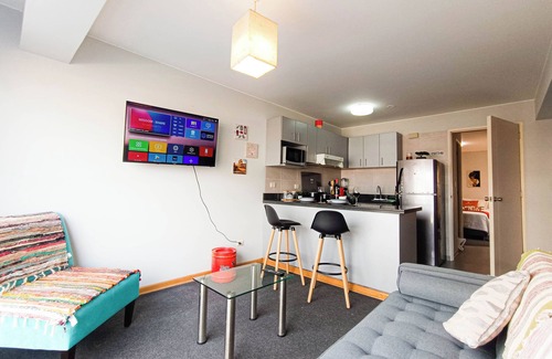 Enjoy the vibrant energy of Miraflores in this cozy 1-bedroom apartment. This beautiful apartment is located near Barranco (5 minutes away), and a few blocks from Larcomar. It is situated in a quiet and safe area with easy access to any point in the city.