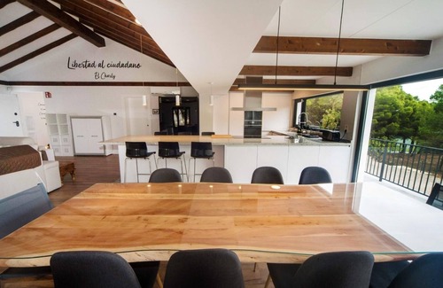 Está destinada a alojar a grupos de hasta 15 personas al contar con 7 habitaciones dobles con baño en suite. Dotada de todo lujo de detalles, entre sus estancias cabe destacar el amplio y luminoso salón comedor y cocina abierta que ofrece unas vistas maravillosas del paisaje montañoso de la provincia de Alicante. En total 270 m2 de casa y 5.000 m2 de terreno para disfrutar todo el año.