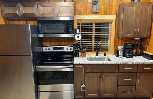 A small rustic and romantic cabin nestled in the upper hillside of the new Waitts Lake Resort. Surrounded by small trees to give you privacy but still allows for a spectacular lake view! Perfect for a couple looking for a romantic getaway or a small family retreat away from the daily grind. This cabin offers our guests a warm and cozy feel with lots of modern amenities! As a guest of the resort you will also have access to our new rec room, and outdoor activities area!
