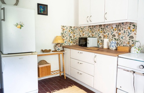 Cozy countryside home in Slovenia’s Vipava Valley with 2 bedrooms (1 king + single, 1 double), gallery loft with sofa bed, full kitchen, wood stove, and bathroom with washer. Sleeps 6. Enjoy a private garden, outdoor dining area, rustic lounge chairs, and parking for 3. No WiFi—just books, vintage charm, and nature. Quiet, cool in summer, ideal for relaxing getaways.