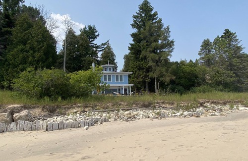 This 3BR rustic cottage is quietly tucked away and just steps away from the shoreline of Lake Michigan. Large deck for beautiful dinners on the water and a walk on the beach. 40 minutes from downtown Milwaukee. Relax and wake to a sunrise on your own beach.
