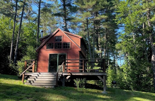 This gem of a rental sits high on a bluff overlooking Messalonskee Lake at its widest point, toward Sidney. A real camp, completely off the (electric) grid, with rainwater supplied via rainbarrel, a new clean interior bathroom with battery powered toilet and sink (no hot water and no interior shower), new kitchen, charcoal BBQ, and quick lake access across railroad tracks. A propane bbq grill was also recently added. This terrific cabin offers a serene escape for guests. With 1 bathroom, it provides a pleasant space to unwind and relax. Kayaks may be rented nearby anbd they will deliver and pick up. Whether you're looking for a peaceful retreat or a cozy getaway, this cabin is the perfect choice for your next vacation. We hope you'll enjoy your stay at our cabin.May thru Oct.
