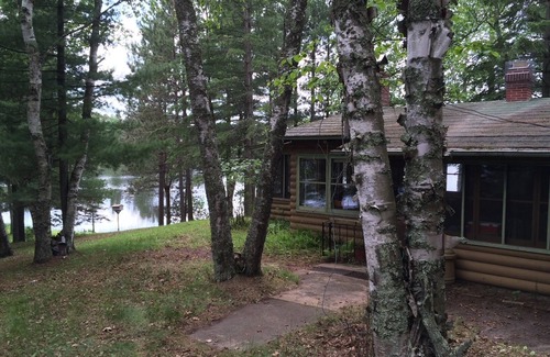 Enjoy a trip up North at the cabin! Small cabin sits out on a point of Long Lake, under giant pine trees, on a remote 40 acre property. Great boating, fishing, swimming, hiking. Screened front porch for lounging and quaint homey layout inside. Beautiful fireplace for cool evenings. Sleeping comfortable for 4 adults, can accommodate up to 4 more kids on fun bunk-bed style cots.