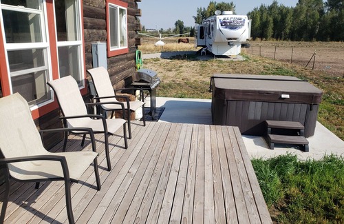 Rustic Country Cabin on horse property with Teton views is located in Felt. Rustic Country Cabin on horse property with Teton views provides accommodation, featuring Balcony/Terrace, Fireplace/Heating, Hot Tub, among other amenities. This Cabin features Balcony/Terrace, Fireplace/Heating, Hot Tub, to make your stay a comfortable one.