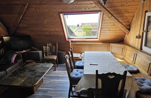 The accommodation does not have central heating, but features a cosy wood-burning stove. The house is a former barn from 1869 and is located on the first and second floors. Due to the stairs, the accommodation is less suitable for people with mobility impairments. The grounds leading to the garden are spacious. The larger bathroom is on the ground floor below the apartment.