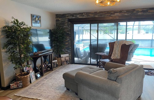 Need to get away from the hustle & bustle of the busy World- Come stay at my beautiful 2 bedroom, 2 bath. Our home offers a Large Private Heated Salt Pool, Outdoor Oasis with plenty of outdoor living- both in the sun & under a covered area- including an outdoor TV & a Charcoal EGG for your grilling experience-