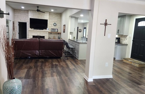 Discover a captivating 3-bedroom, 2.5-bathroom farmhouse with a pool, featuring four queen beds and additional roll-over options. Adjacent to it, a charming 2-bedroom, 2-bathroom farmhouse with longhorns awaits to make your stay truly unforgettable.