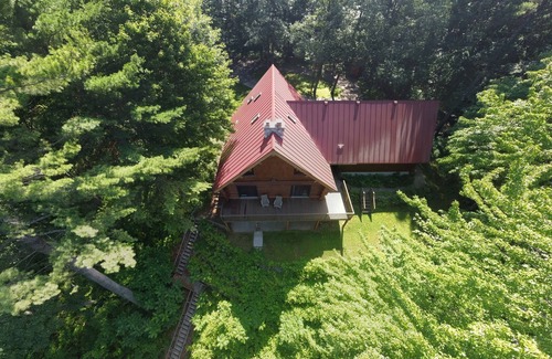 Just outside Stevens Point, this log home sits atop a bluff overlooking the charming Lake Onland. This 2,600 square foot home sleeps up to 10 adults, 12 with children and is nestled amongst century-old pines, that make you feel like you're living in your own personal forest. Just steps below the bluff is a crystal clear glacier bowl lake with your own private beach. It is the perfect place to relax and renew your spirit.