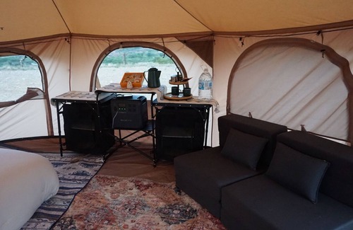 We are proudly off-grid and environmentally friendly, relying on solar power for our energy needs and utilizing water conservation practices throughout the site, including greywater systems and water-efficient fixtures. Our bathrooms use cassette toilets that are safely emptied daily, and our showers and handwashing stations are designed to minimize waste while maintaining comfort and cleanliness.