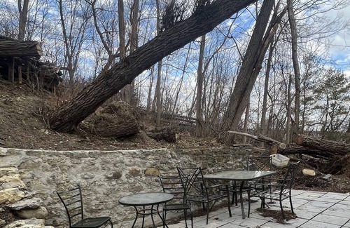 When you arrive you will walk up the left side of the house to the upper back patio. 1 bd apt. with king size bed. Full bath remodel, bathtub , standup shower. Refrigerator/freezer in living area. Large couch. Wireless internet. Large flatscreen TV on stand that you can move to any room. We can provide a blowup mattress if needed for more guests. 4 people could comfortably stay. There is a microwave, air fryer, toaster oven, crockpot. A stand up rack to hang clothes. Hangers provided, towels & washcloths provided. Linens provided. Pets are welcome, just let us know :) there is a front porch off of the main bedroom facing the house, and the back patio has table, chairs , and a grill can be provided.