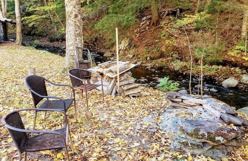 Rustic Log Cabin #3 - “The Lodge” is the largest log cabin on site. This cabin is perfect for a couple looking to relax and get away. Enjoy the wood burning fireplace while relaxing. Play a game or build a puzzle. Just 15 minutes from Franconia Notch State Park, Cannon Mountain and the Kancamagus Hwy. What makes Rustic Log Cabins unique? Wood burning fireplaces in every cabin with the Salmon Hole Brook that runs by each cabin and the outdoor fire pits. Listen to the soothing water as it rushes over the rocks. You can stick your feet in to cool off, sit alongside while watching and listening to the babblings of the brook. Each cabin has a kitchen, bathroom and Wi-Fi. There are 7 cabins on the property, each with a fire pit and access to the brook. They all have a front porch and yard around each cabin for charcoal grilling. We have a trail that leads to the main snowmobile corridor that runs through NH, VT & ME. You’ll pass the artesian well house that delivers water to each cabin. Rustic Log Cabins are in the White Mountains region of New Hampshire, just 15 minutes away from the White Mountains National Forest and Franconia Notch State Park with its many hiking trails and natural wonders. We are located along an official NH Scenic Byway - Rt. 117, a.k.a. Sugar Hill Rd. - nearby many attractions and small villages. within 5-15 minutes are the towns of Sugar Hill, Littleton, Franconia and Bethlehem. Within 20-30 minutes are Lincoln and Woodstock, several ski resorts as well as Franconia Notch State Park, White Mountains National Forest and the scenic Kancamagus Highway. A few minutes more are other ski areas, plus Crawford & Pinkham Notches and New Hampshire’s most famous “resident” Mt. Washington. We are open year round. Every one of our guests has their favorite season and cabin. Spring - Welcome the new blooms and baby creatures to the region. The mountain air awakens your “scent-ses“ and the blooms preview what’s to come. Summer - The full complement of the region's outdoor activities await. Hiking, fishing, zip-lining, biking, and more. Autumn - The Fall adds many colorful aspects as the rainbow of leaves float down into the Salmon Hole Brook, onto its banks and throughout the White Mountain region. Cool nights and clear skies are great to experience with a cozy fire, either outside in the fire pit or in the fireplace. Winter - Skiing, snowmobiling, snow laced forests and that magical time of year can all be had. We are as close as 15-30 minutes from 3 major ski areas and within 45 minutes to others. You can snowshoe from your cabin onto our trail. We are also pet friendly! A $25 per pet, per night fee applies. Proof of vaccination is required. Size and breed restrictions may apply. Max 2. So let’s summarize the Rustic Log Cabins: - Salmon Hole Brook - Wood burning fireplaces - Fire pits - Private hiking trail - Proximity to natural wonders - Hand hewn logs - Artesian well water - 1 of only 7 unique cabins - Front porches and yards - Kitchens and baths - Charcoal grills - Near several small towns & villages - Close to many recreation areas - Open all year (many others are not) - Pet Friendly Rustic Log Cabins create an experience that no other cabin or cottage in the region has. The Lodge is private and is not a shared space. The basement level is accessed by the on-site handyman and cleaning staff during check-out and check-in times. Guests have full access to their assigned cabin plus the parking areas and fire pit. Salmon Hole Brook, trails, other common facilities and the parking lot. 1 CAR PER CABIN IN MAIN PARKING AREA.