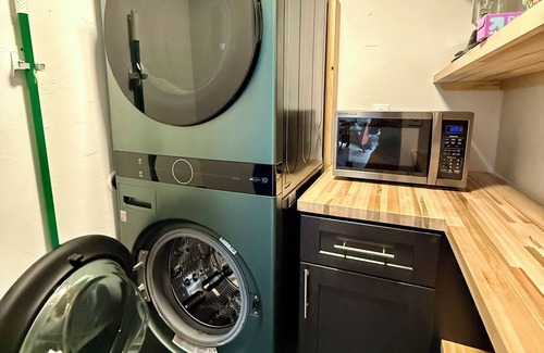 - Fully stocked with high quality knives, cutting boards, pots and pans, toaster, full set of dishes, utensils, and more!