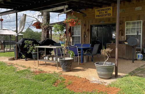 Enjoy a stay in the gorgeous piney woods of East Texas! Watch the kids play in the pool as you grill at the cook house. Use the metal detector to find artifacts on the grounds of the 150 year old Dog-trot styled Ante-Bellum main house. Visit the nearby Cherokee trace drive thru Safari park, Mission Tejas, Caddo Mounds, I.D Fairchild state forest,and Texas State railroad. Enjoy spring Wild flowers , birding, or experience a brilliant night sky unobstructed by city lights. Enjoy pastoral views of grazing livestock. Collect fresh eggs and feed the resident pot bellied pigs. In the fall you can pick Pecans and experience the Texas fall colors. Polar express is booking right now. We have Horse accomodations available for trail riders and plentiful parking for boat haulers. Proximity to Davy Crockett National forest, Historic Nacogdoches, Canton trade days and Tyler Rose park. Bunkhouse sleeps 4, with additional sleeping area on the pull out sofa bed. Bunkhouse also has refrigerator, coffee maker and toaster oven. Full kitchen is located in the Cook house. Guests have access to Bunkhouse, pool house and swimming pool.(No lifeguard on Duty, Guests swim at their own risk.) If you can't cut the cord at work, we have fast wi-fi . This is a working ranch with livestock. Pool is not heated and may be too cold for bookings after September. Extra fee for horses. Horses must have current coggins ,signed waiver and owner must provide their own feed