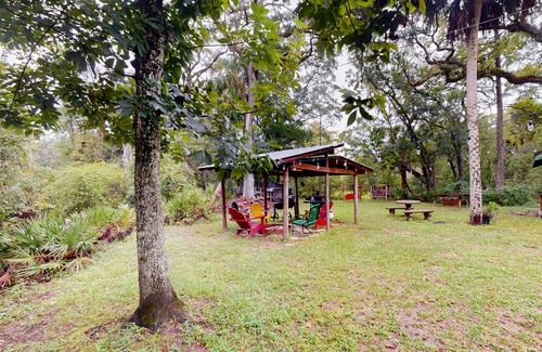 Surrounded on three sides by the Waccasassa River and covered by a canopy of shady oaks and native vegetation, this scenic retreat comes packed with Natural Florida charm. The cabin is furnished for no-frills comfort and standalone living, making this a great choice for an angler's escape or a low-key couples getaway. The large yard (shared with the neighboring cabin) provides plenty of opportunity for enjoying the outdoors with ample seating options, a gas barbecue grill, and a covered firepit. You'll be situated right between the Goethe State Forest and Wacasassa Bay Preserve State Park. There's also a canoe available at the property that you can use to explore the river. The colorful fishing community of Cedar Key is only 25 miles away. Cyclists can enjoy easy access to the Nature Coast State Trailhead in Chiefland (16.6 mi.). Fanning Springs, Manatee Springs, and Otter Springs are all within a 30-mile radius.