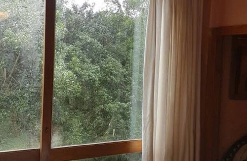 They will have access to all rooms of the house. It has cooking utensils, hot water in all taps, in addition to the stove, has microwave and barbecue inside the house. Comfortable room with fireplace. Two bedrooms with double beds, a bedroom with bunk beds and a double mattress. Place with a lush nature ...