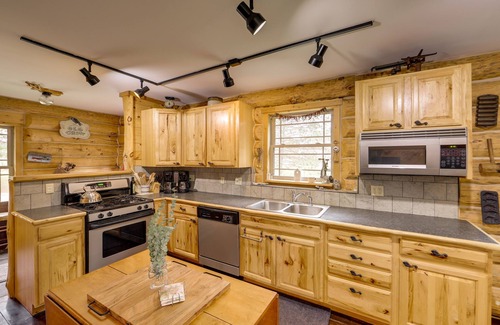 CABIN FEATURES: 2 living areas, 2 Smart TVs, gas fireplace, dining table, high chair, sunroom, books, board games, rustic & cozy cabin decor