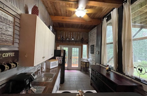 The Mountaintop Homestead is a unique, very private, adults-only 3-story, rustic cabin located on Summerhouse Mountain on a working farm. It is best suited for people who are in the area to work, hunt and/or fish, people who want to experience farm living, or just to enjoy a quiet get-away. Although in a remote location, it's only 15 minutes to Walmart & local area restaurants & attractions. It's 45 minutes to downtown Chattanooga; and 1.5 hrs to Huntsville, Birmingham, & Nashville. It has a queen bed, a full bed, and lots of outdoor living space. Enjoy the convenience of WiFi, heating, AC, and more. We raise cows, pigs, chickens, turkeys and ducks, as well as fruit and vegetable gardens. We are always willing to share fresh eggs and other produce when available! Our farm dog, Mya, is very friendly and considers it her responsibility to welcome all new guests. Because introducing new pets can be unpredictable, we request that you respect the no pet policy.