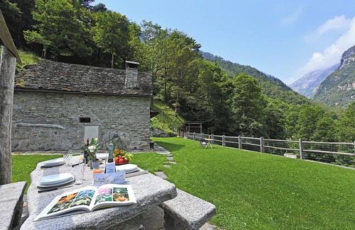 The house is off the beaten track,(a non-sports car is recommended), surrounded by meadows and woodland, overlooking the lovely Verzasca River. There are many hiking paths through the BO Bosco as well as lovely treks along the Redorta River, up to La Froda waterfall (30-minute walk).