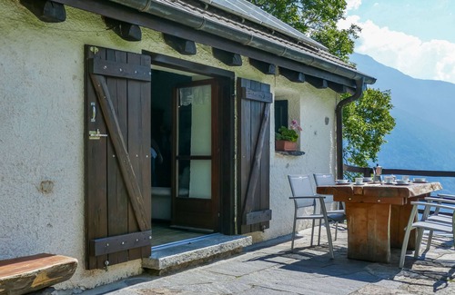 Melànico 18 km from Malvaglia: >>Note: Power is supplied by a solar panel, stove, boiler and fridge are gas-operated. Mountain road 200 m. unmade road, not recommended for cars with low ground clearance. Cosy, rustic single-family house "Rustico Girasole", 1'080 m a.s.l surrounded by meadows. 2 km from the centre of Leontica, 19 km from the centre of Biasca, 40 km from the centre of Bellinzona, in the district Valle di Blenio, in a cul-de-sac, south-east facing position. Private: natural state property 1'000 m2 (fenced), terraced garden, meadow. Terrace, garden furniture, barbecue house. In the house: storage room for bicycles. Narrow motor access (200 m via unmade road). Parking at the house. Shop 4 km, supermarket 8.5 km, restaurant 8.5 km, bus stop "Leontica Chiesa bus 133" 1.8 km, railway station "Biasca FFS - SBB" 20 km. Nearby attractions: Castelli di Bellinzona UNESCO, Castello di Seravalle, Semione, Mercato di Bellinzona, Chiesa di Negrentino, Museo della Valle di Blenio, Archivio Doneta. Well-known lakes can easily be reached: Luzzone, Retico, Ritom, Lago di Lugano, Lago Maggiore. Hiking paths: Nara, Lucomagno, Greina, Val Malvaglia, Valle di Blenio. Please note: car recommended. Baby equipment. Animals in the neighbourhood.