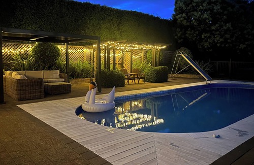 #rustlingoaks nz Boho Pool House - king bed, 10 mins to Hamilton Airport | Ski Chalet in Tamahere