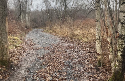 There is a gravel path leading back to our cabin on the Deer River, which hopefully will open next spring. You are welcome to walk or bike the trail and enjoy the riverfront back there!