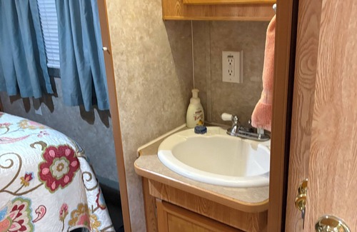 Fifth wheel RV with 2 bedrooms and one large pushout near Blakely and the river with plenty of room. Grill outside or cook in the kitchen. Play a game of cornhole or play softball. Bring your boat or head to Live Oak to fish off the pier or to the Causeway to fish off of the bank. 30 minutes from Mobile, 1 hour from Pensacola, Wind Creek Casino is within 30 minutes.