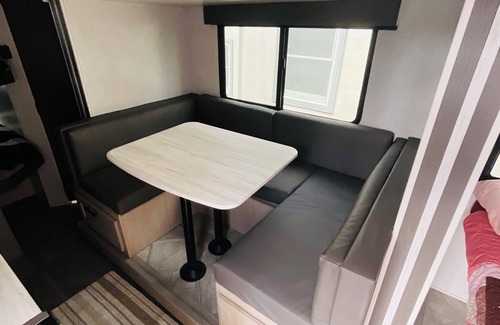 Nestled in Brentwood, this delightful recreational vehicle offers a queen bed and the other sleeping area with a bunk bed. With 1 bathroom equipped full bath with a shower guests can relax in the soothing living room with a dinette area that can convert into a bed. Enjoyable amenities like WiFi, flat screen tv, heating, AC, and Bluetooth stereo. No slide outs on trailer.
