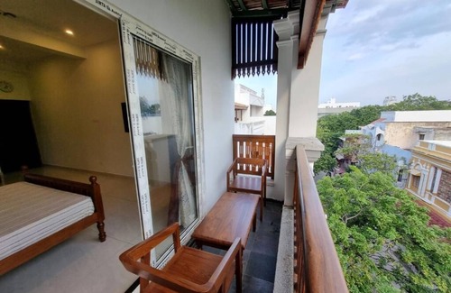 Comfortable Accommodations: RVS Chalet in Puducherry offers a homestay experience with family rooms and private bathrooms. Each room features air-conditioning, a balcony, and a TV.