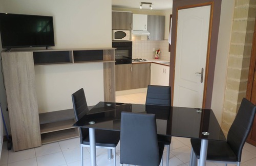 "Saint Avit", 3-room house 40 m2 on 2 levels. Object suitable for 2 adults + 2 children. Renovated in 2017, practical and beautiful furnishings: living/dining room with dining table and satellite TV (flat screen), radio. Exit to the garden. Open kitchen (oven, dishwasher, 4 gas rings, toaster, kettle, microwave, freezer, electric coffee machine). Upper floor: 1 room with sloping ceilings with 1 french bed (140 cm, length 190 cm). 1 room with sloping ceilings with 2 pull-out beds (1 pers. 2 x 90 cm, length 190 cm). Shower, sep. WC. Electric heating. Terrace 30 m2. Terrace furniture, barbecue (portable), deck chairs. Facilities: washing machine, iron. Internet (WiFi, free). Please note: non-smoking house. Smoke alarm.