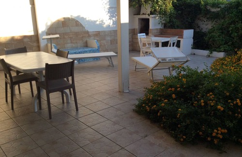 consisting of 2 bathrooms with shower, 3 bedrooms for a total of 8/9 places, (but can also be rented for 2/3/4/5/6/7 people). Large garden of 100 square meters, with showers, fireplace for cheerful barbecues, table chairs etc. Kitchen equipped with flat pots, glasses, mocha and everything you need to cook. Equipped with washing machine, television, air conditioning, fans and linen on request. Free parking under the house. Located in a strategic position to visit all the cities of Salento and enjoy all the fabulous white sand beaches. In the surroundings there are bars, restaurants, pizzerias, market tobacconists. The center, pedestrian, close to the beautiful sea, offers everything you need to spend unforgettable evenings.