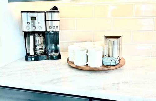 When entering the Master bedroom, you will immediately notice the coastal themed decor with luxury bedding and Sony wall mount TV. The master bath features double sinks and zero entry shower. directly off the Master Bath is access to the large master walk in closet. Assess to the handy laundry room is available from the Master closet or the kitchen area.