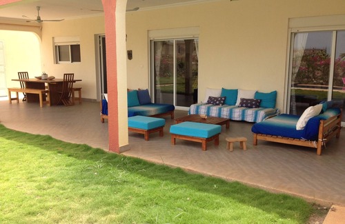 The villa is located on a plot of 900 sqm, 1 km from the center of Saly and shops. It is ideally located in a beautiful residential area, very quiet, 100 m from the beach.