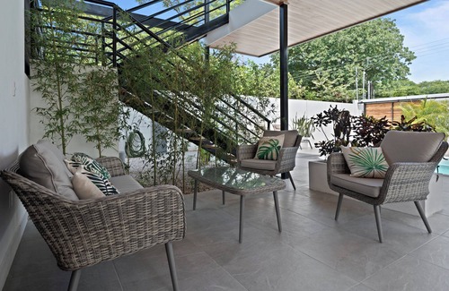 This tropical and modern home is nestled in the desired neighborhood of Canto de Gavilanes just 10-15 minute walking distance to beach and center of town, or 2-3 minute drive, quiet and peaceful yet close to everything for you to enjoy the beauty of Samara's relaxing vibe.
