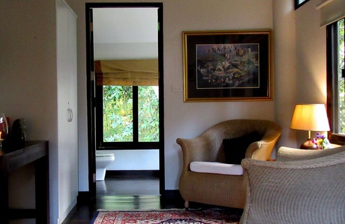 We are minutes from the Ring Road, but very peaceful forest setting, with 100 year old trees. Our architect deisgned house has the Thai character but the comfort of Western Standard.